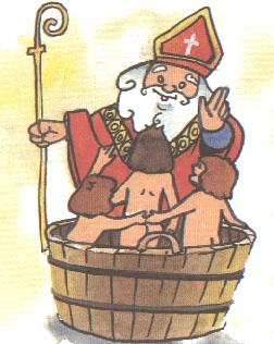 : visite de St Nicolas qui apporte jouets et bonbons à chacun des enfants.